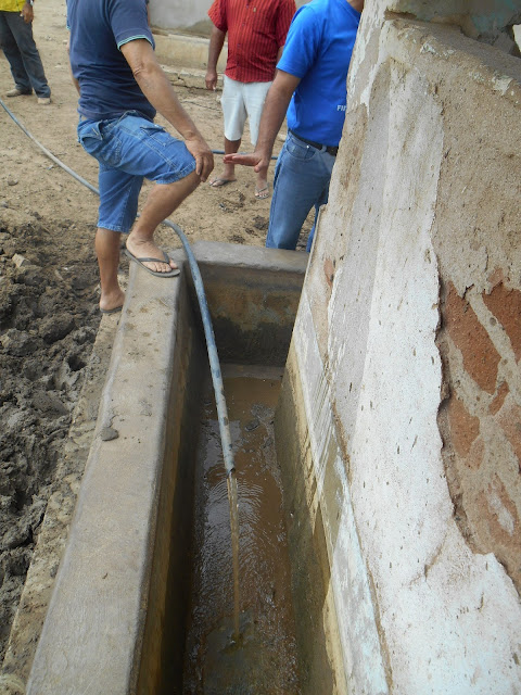 Graças a Deus a bomba foi instalada, está produzindo 2.400 litros de água por